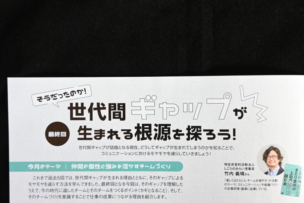 全トヨタ販売労働組合連合会発行の機関紙『HOLON』196号(2023年7月発行)に、しごとのみらい 理事長 竹内義晴が寄稿した記事「世代間ギャップが生まれる根源を探ろう~仲間の個性と強みを活かすチームづくり」が掲載されました。