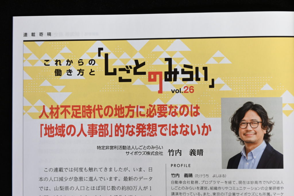 第四北越リサーチ&コンサルティング発行の機関紙『Monthly』2023年9月号に、しごとのみらい 理事長 竹内義晴が寄稿した記事「人材不足時代の地方に必要なのは「地域の人事部」的な発想ではないか」が掲載されました。